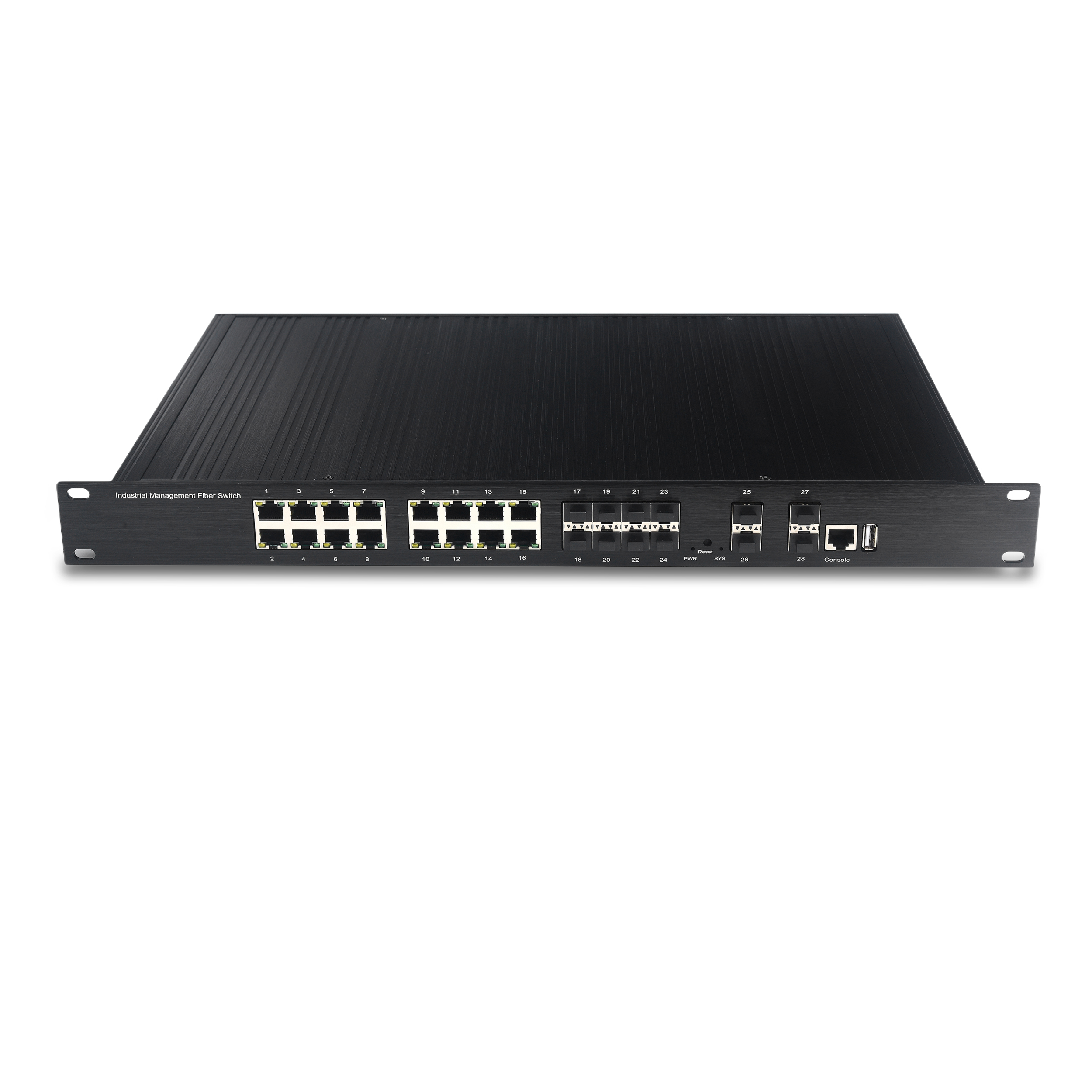 LED灯 | 电源指示灯:PWR(绿色) ;系统指示灯:SYS(绿色);网口指示灯:黄色(1000)绿色(100) ;光口指示灯:绿色(SFP插槽中间) |