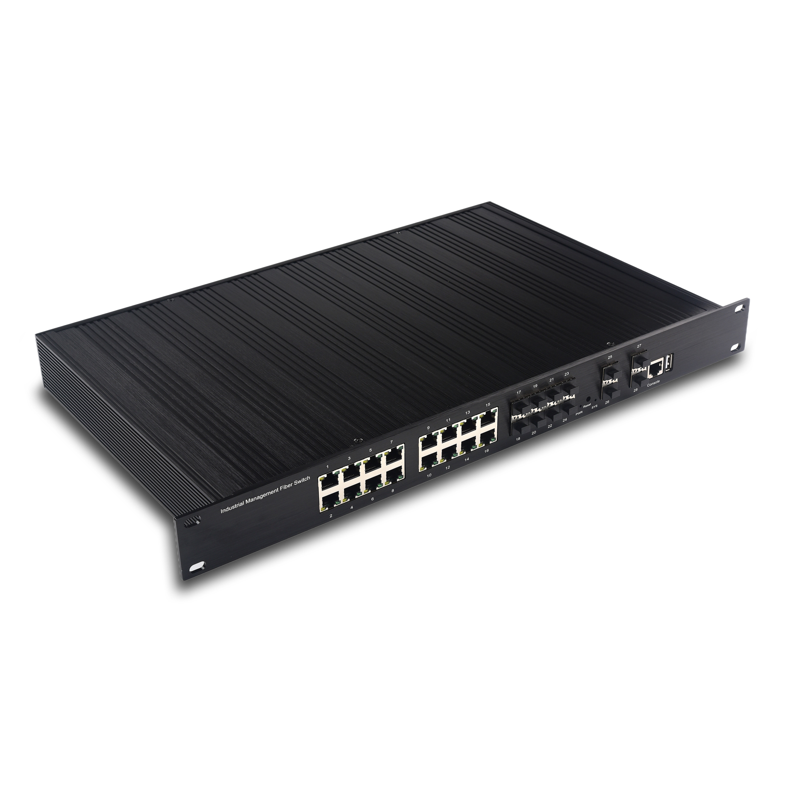 该系列是我司自主研发的一款管理型工业级强三层万兆光纤以太网交换机,万兆4光千兆8光16电,支持 4个100/1000/10G SFP/SFP+光口+8个100/1000 Base-X SFP光口 +16个10/100/1000 Base-T 自适应 RJ45 端口。万兆4光千兆8光16电完全遵循工业产品设计与用料,外壳采用19英寸机架设计,宽范围工作环境温度、DC37-75V/AC100-240V双电源冗余等技术,提供了耐高/低温、防雷等卓越的工业级品质;支持强大的管理功能,包括系统管理,全面二层管理功能,三层路由管理,QOS队列管理、全面的网络安全管理和监测维护管理;工业级的三级 ESD保护其适合多种场合,例如智能交通、室外监控、工业网络、平安城市和其他恶劣环境中的部署要求,该产品同时采用无风扇、低功耗、工业级设计,-30至70℃工作温度范围,能够满足各种工业现场的要求,提供经济的解决方案。 该设备可广泛应用于智能建筑,智慧城市,智慧社区,智能交通、电信、安防、金融证券、海关、海运、电力、水利及油田等各种宽带数据传输领域。