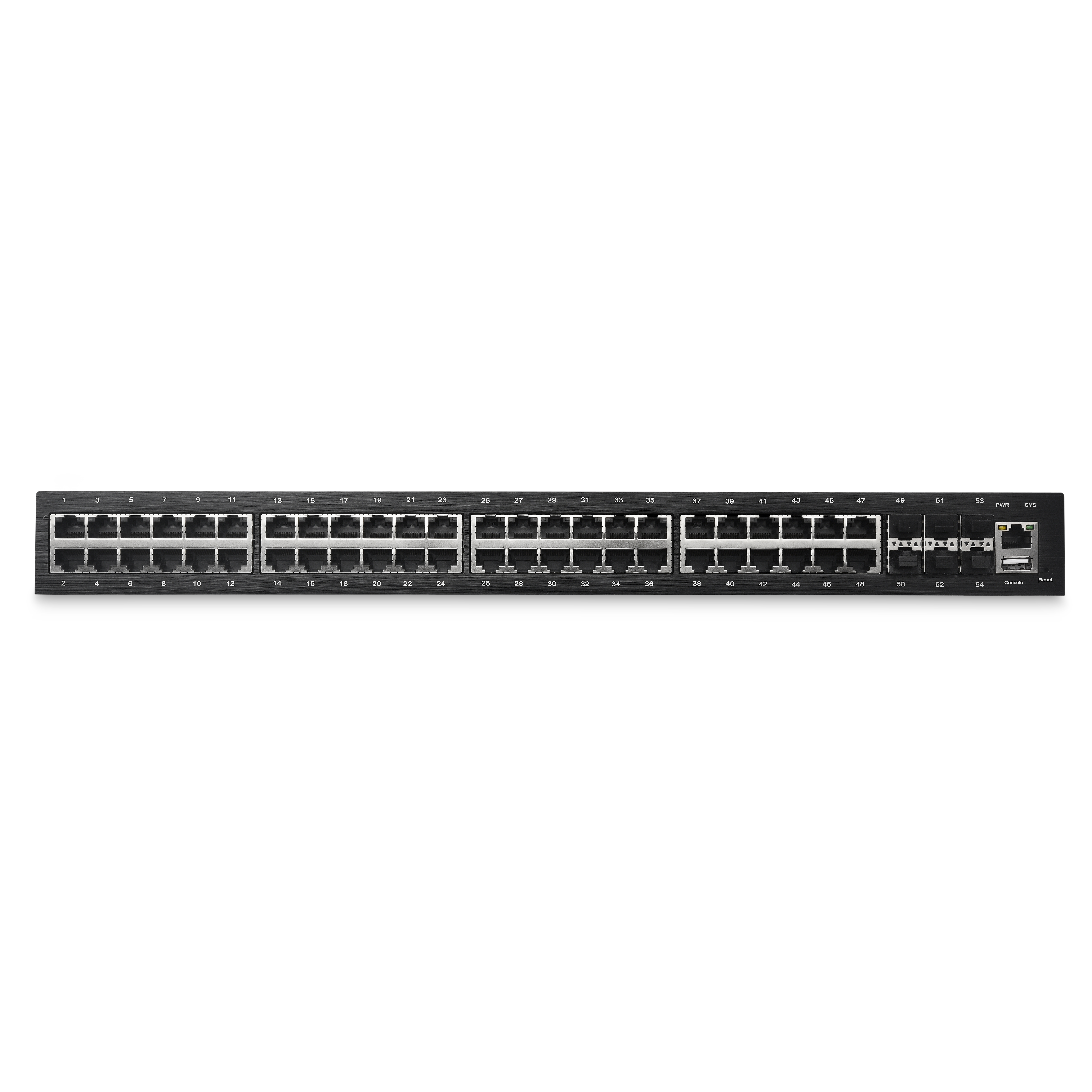 业务接口 | 6*100/1000/10G Base-X SFP/SFP+, 48*10/100/1000 Base-T RJ45自适应 |